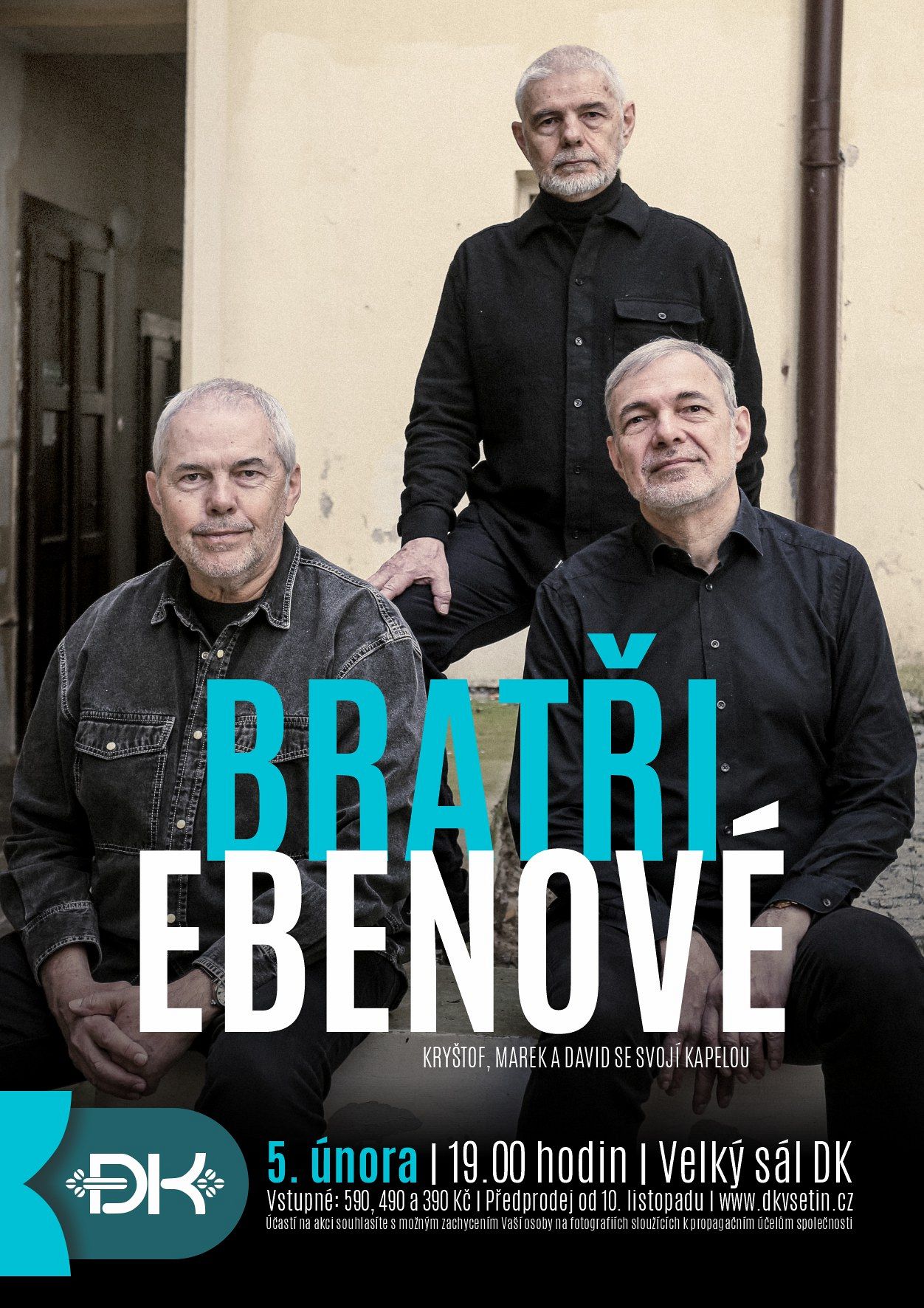 Hudební událost roku 2026 je tady. Ve čtvrtek 5. února od 19 hodin vystoupí ve velkém sále Domu kultury Vsetín oblíbená hudební skupina Bratři Ebenové v čele s Markem, Kryštofem a Davidem Ebenovými. Trojice doplněná o špičkové české hudebníky přiveze na Vsetín výběr svých největších hitů i písně z aktuálního alba Co my víme.