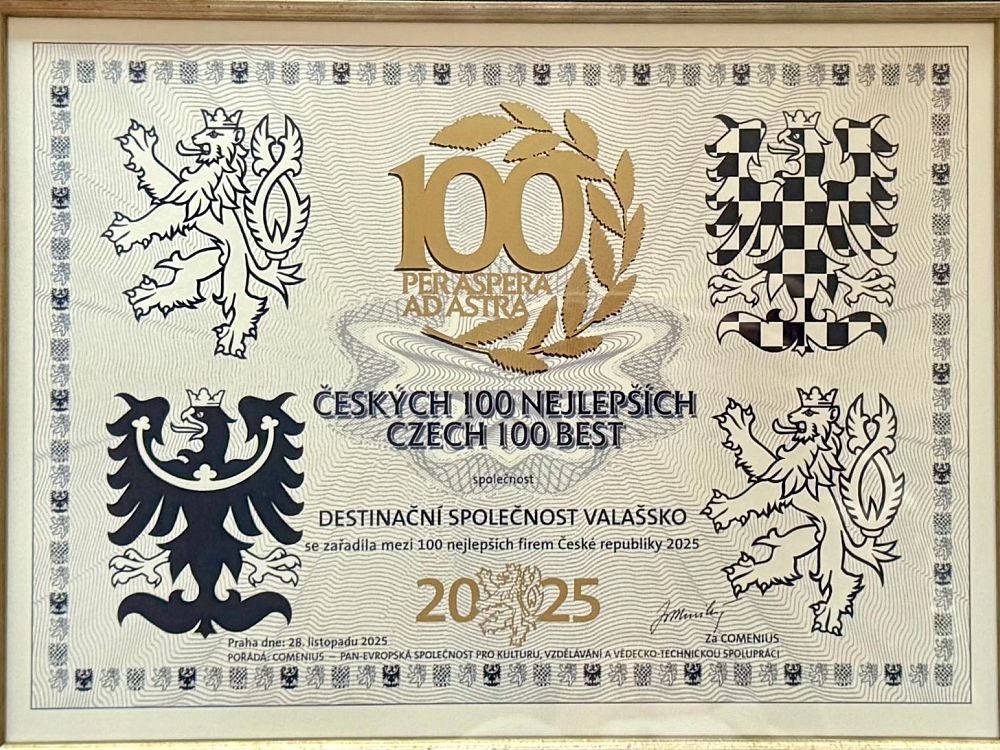 Mezi oceněnými se opět objevila Destinační společnost Valašsko, která si svou prací a nasazením v oblasti rozvoje cestovního ruchu vysloužila prestižní zařazení mezi České 100 Nejlepší. Navíc jde už o třetí rok v řadě, kdy se společnost v žebříčku umístila, což potvrzuje stabilně vysokou kvalitu její práce. Předsedkyně Sdružení obcí Mikroregionu Vsetínsko Martina Hovořáková k tomu uvedla: „Jsme hrdí, že naše neustále úsilí o rozvoj a podporu cestovního ruchu na Valašsku bylo uznáno v tak prestižní soutěži. Toto ocenění je pro nás potvrzením, že naše práce a snaha o rozvoj turismu na Valašsku jsou na správné cestě. Jsme vděční za toto uznání a zavazuje nás to k dalšímu úsilí v prospěch našeho regionu."