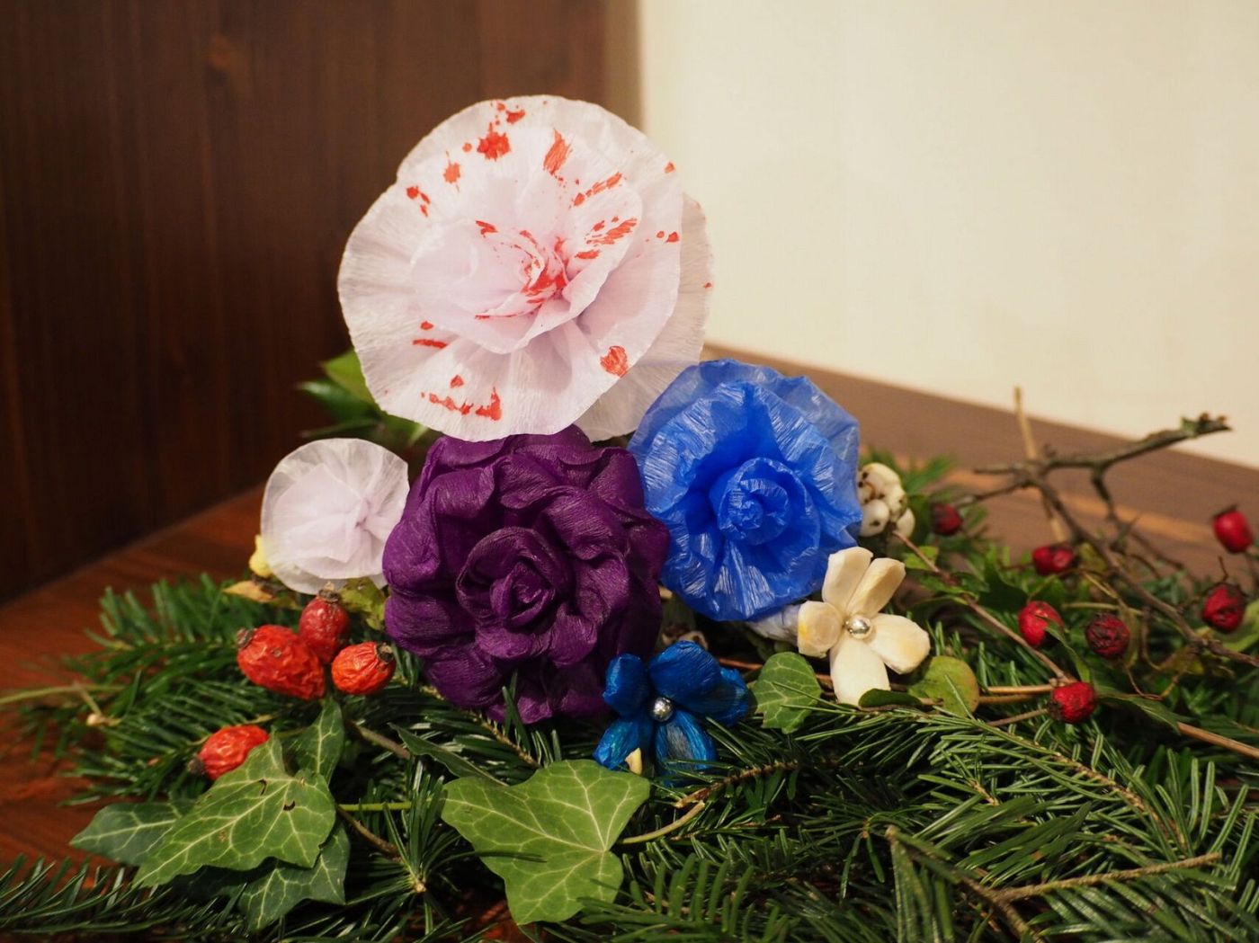 Výroba voskovaných papírových květů.