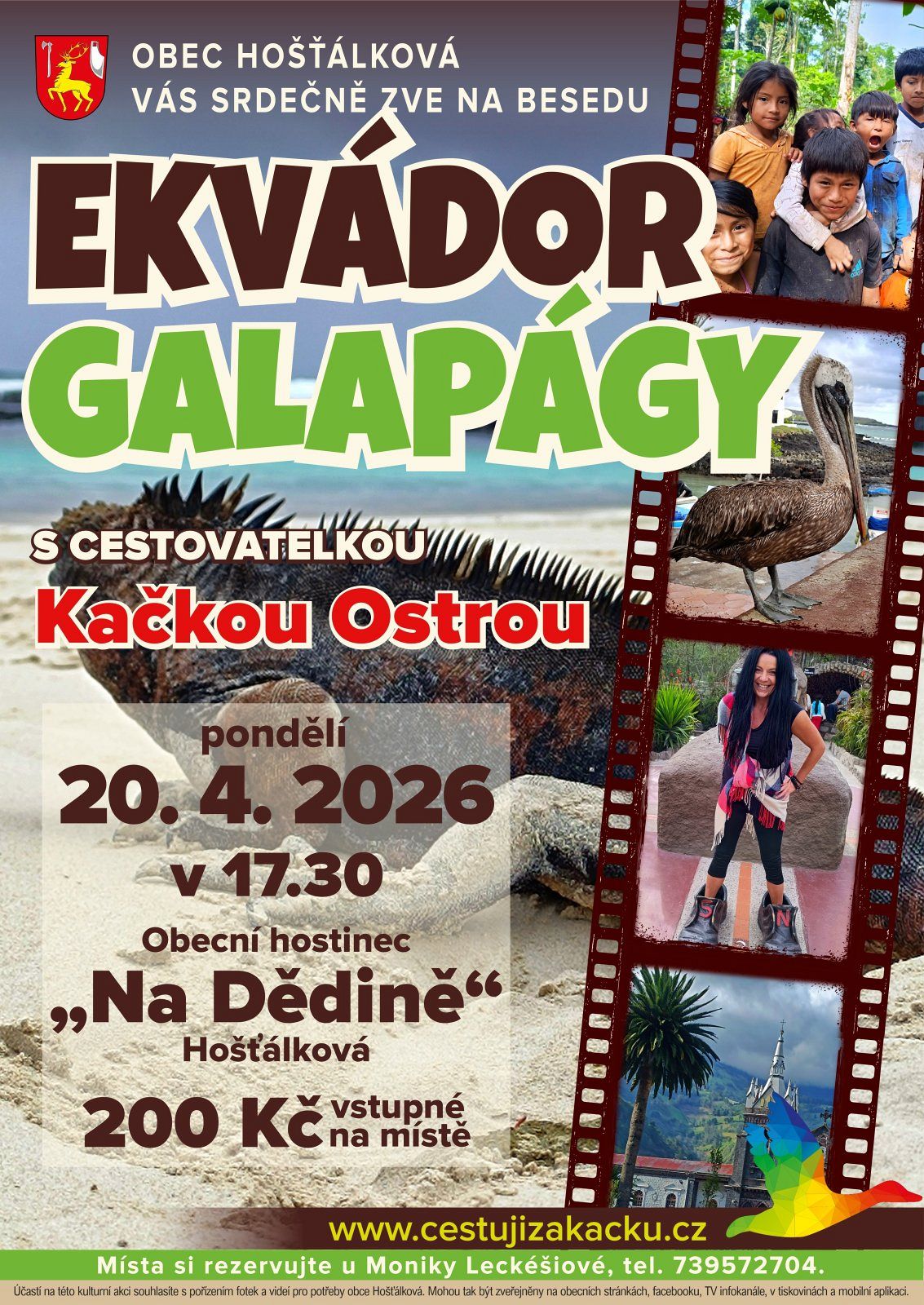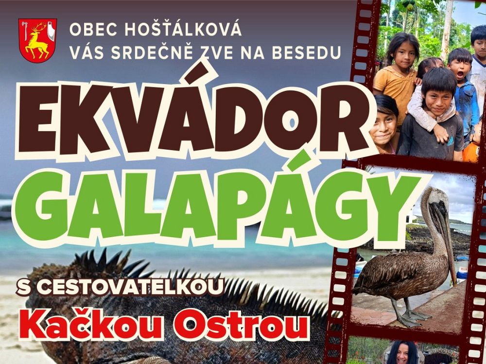 V PONDĚLÍ 20. dubna 2026 se v Obecním hostinci NA DĚDINĚ uskuteční již třetí ročník BESEDY s cestovatelkou a spisovatelkou KATEŘINOU OSTROU, tentokrát na téma EKVÁDOR a GAPALÁGY.