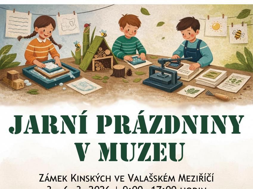 Děláte si plán na nadcházející jarní prázdniny a hledáte místo, kde se zabaví děti i dospělí? Dorazte za námi do muzea na zámek Kinských, kde jsme pro Vás připravili oblíbený program Jarní prázdniny v muzeu. Od úterý 3. do pátku 6. března Vás čekají tematické tvořivé dílničky, tradiční pátračka po zámku a spousta dalších hravých aktivit. V rámci akce si budete moci prohlédnut novou výstavu Pomocníci v domácnosti i další velmi zajímavou výstavu Archeologická tajemství Valašského Meziříčí, která bude na zámku k vidění už jen do letošního dubna. Celý den Vám bude k dispozici i stálá multimediální expozice Člověk v krajině, krajina v lidech, dětská herna a samozřejmě i naše stylová zámecká kavárna.