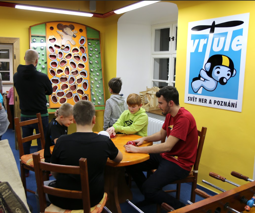 Třípatrový dům her nabízí zázemí pro příjemně a užitečně strávený čas při hraní, tvoření a učení se zážitkem. Vyzkoušet si můžete ojedinělou hravou expozici „Kdo neviděl, neuvěří!", která vás vtáhne do světa optických klamů a zrakových iluzí, interaktivní výstava „Evropou křížem krážem" představí formou několika samostatných her náš kontinent, „Hraví stavitelé" vás zavedou do světa dřevěných kostek, kde se fantazii meze nekladou a s baterkou v ruce se můžete vydat prozkoumat spletitá zákoutí „Krtkova bludiště", které se rozprostírá ve dvou místnostech. Lákavý je také průlez věží z přízemí do prvního patra. Svou hbitost a postřeh můžete vyzkoušet u velkých postřehových her. Chvilku klidu najdete v útulné kavárně, kde se můžete zároveň pobavit u jedné z desítek deskových her či vyzkoušet svůj um u záludných hlavolamů. Hry si můžete zakoupit v obchůdku.