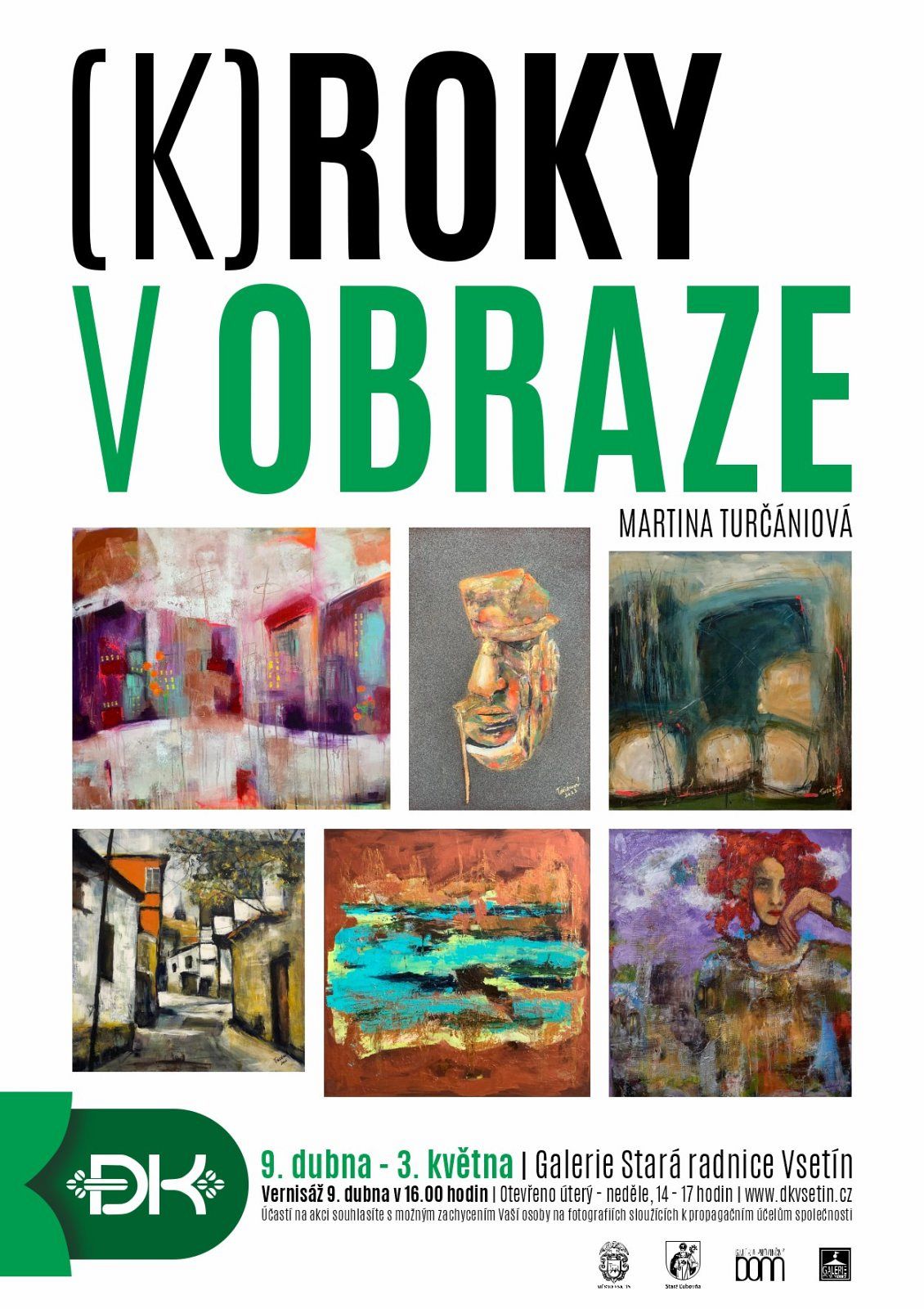 Galerie Stará radnice na Vsetíně nabídne od 9. dubna do 3. května výstavu malířky Martiny Turčániové (K)roky v obraze. Výstava, která vznikla u příležitosti autorčina životního jubilea, představí výběr z autorčiny malířské tvorby. Vernisáž se uskuteční ve středu 9. dubna od 16 hodin.