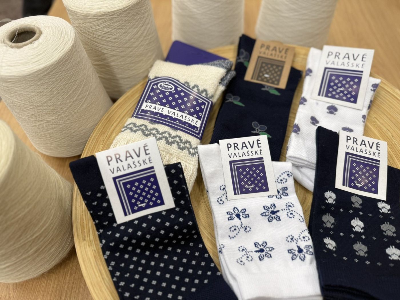 Jemný modrotisk s kytičkami, ovečky, zasněžené chaloupky, modré trnky… Takové a další stylové valašské motivy zdobí ponožky z rodinné výrobny Knebl Hosiery, která se nachází v obci Hovězí kousek od Vsetína. Nejen originální regionální motivy, ale i kvalitní přírodní materiály, spojení tradiční výroby s moderní technologií a podíl ruční práce zajistily známé výrobně ponožek možnost užívat regionální známku PRAVÉ VALAŠSKÉ.