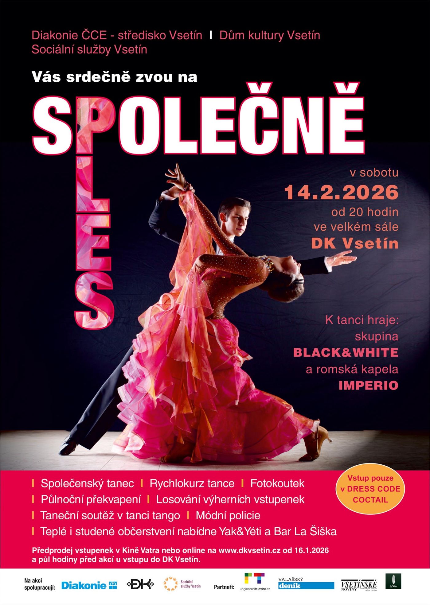 Máte rádi tanec, energii a atmosféru, kde se každý cítí vítán? Srdečně vás zveme na další ročník multikulturního plesu Společně, který se uskuteční v sobotu 14. února v Domě kultury Vsetín od 20 hodin.
