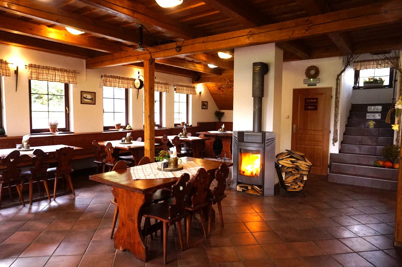 Pro rodiny s dětmi je toto místo jako stvořené – k dispozici je velká slunečná terasa s dětským hřištěm, trampolína a dětský koutek v patře. V zimních měsících zase zpříjemní atmosféru útulná krbová kamna.