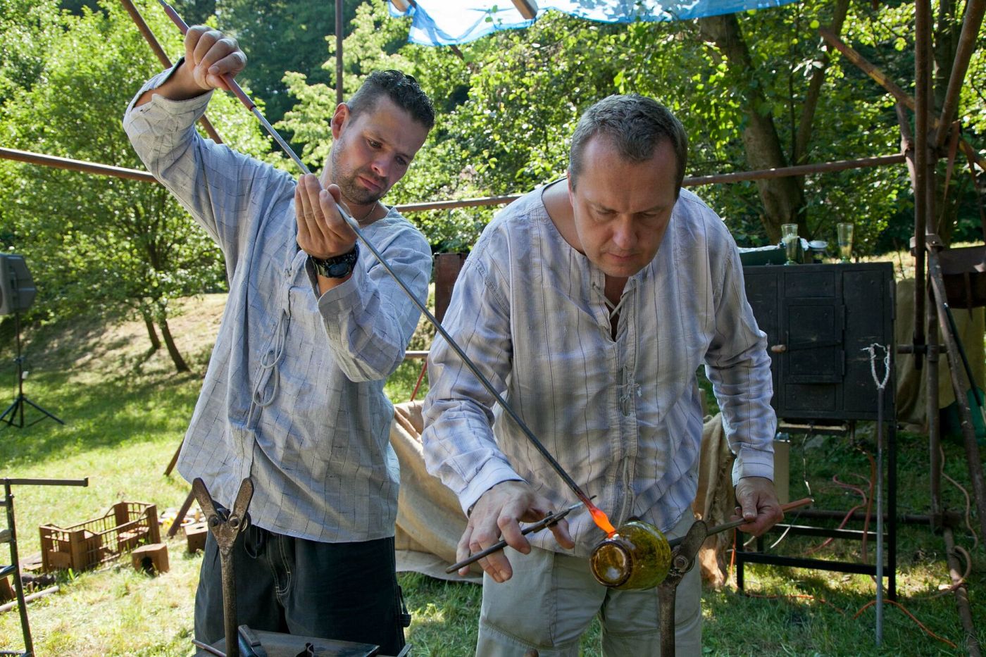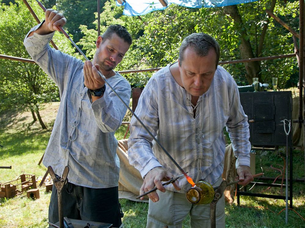 Zpracování skla a ruční práce sklářů.