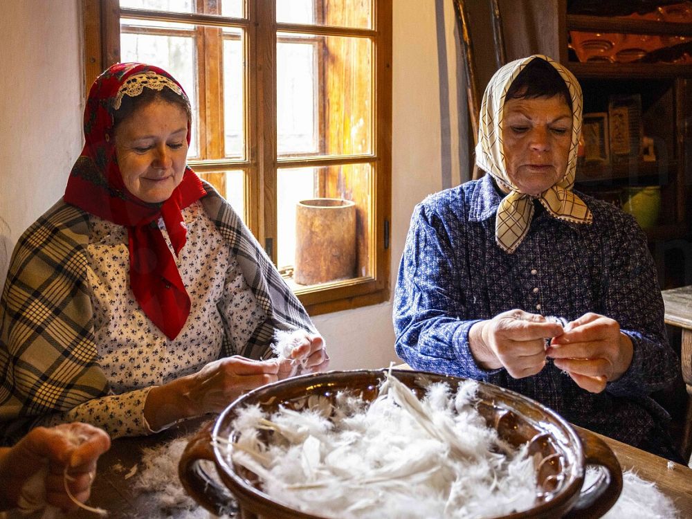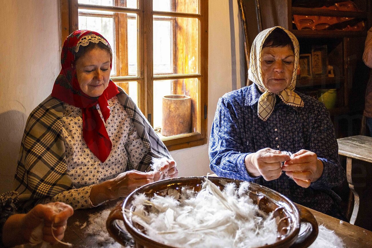 Nabídka dárků z dílen lidových výrobců, koledování, obchůzky lucek a čertů, oživené expozice ve Valašské dědině.